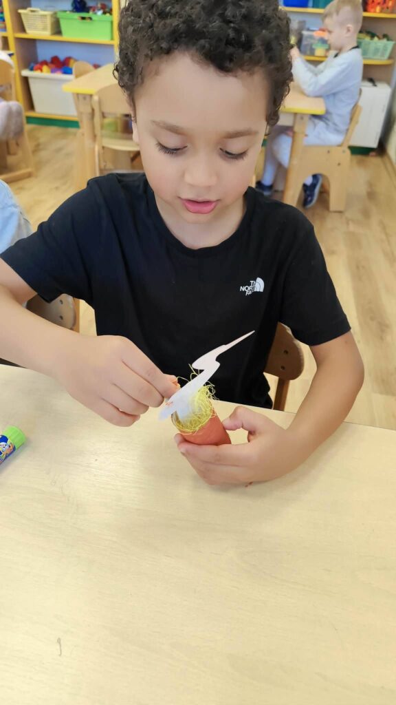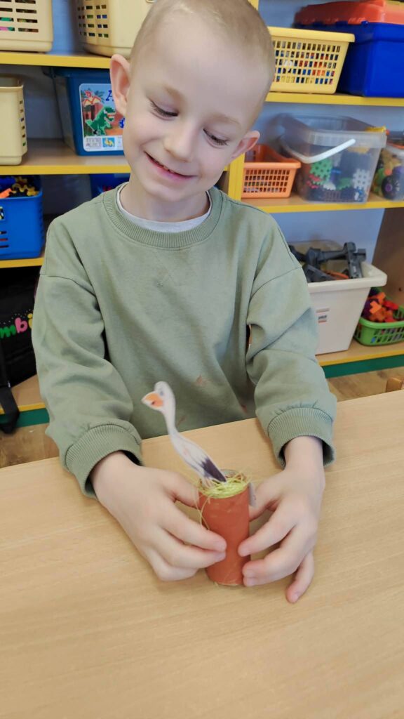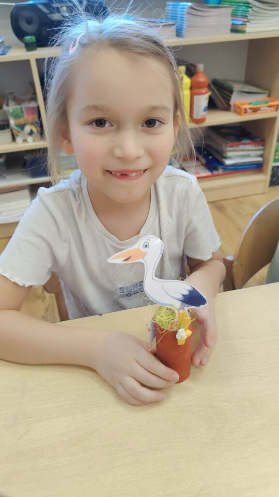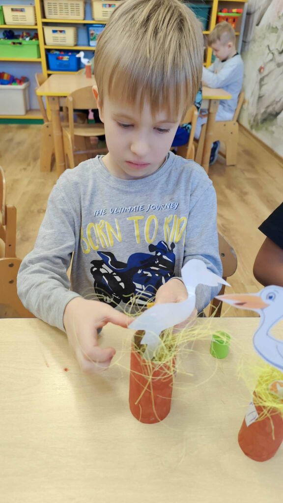 I przyleciały Bociany do Przedszkole Niepubliczne Caritas Nr 1 W Pile, tylko że te Bociany to takie wyjątkowe … bo WYCZEKIWANE i wykonane małymi rączkami Przedszkolaków z grupy Motylki. Było wycinanie, malowanie, klejenie, wpychanie sianka …